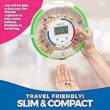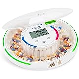 PORTABLE AUTOMATIC PILL REMINDER: We've taken pill organizing to the next level with the MEDca Automatic Pill Dispenser. This 28-Day Electronic Medication Organizer ensures you take the right pills at the right time effortlessly because of the built-in alerts ensuring you never miss or prevent you from doubling your dose due to forgetfulness INTELLIGENT REMINDER ALARM DESIGN: The round pill dispenser has 28 slots and 6 interchangeable dosage rings so you can customize depending on your needs. Choose from a frequency of 1 time per day up to 6 doses per day. Features both audio alarm & visual notifications, each slot is spacious enough to accommodate up to 18 pills, supplements, or capsules. Requires 4 - AA batteries ORGANIZE YOUR MEDICATION BY DAY-TIME-FREQUENCY: No more sticky notes, memos on the fridge, or relying on your memory when to take your medication because the pill dispenser is programmable. When it's time to take your pills, the pill organizer will light up and you will hear a notification sound. The alarm will only stop once you flip the dispenser upside down to get your pills. LOCKING LID WITH KEY - KEEPS MEDICATIONS SECURE: Because of the locking cover with included key, accidental spills or overdosage and unauthorized access can be prevented. The battery powered carousel automatically rotates when it is time for the next dose ensuring pills are always taken at just the right time. An integrated magnifier on the lid allows for a close-up look of the day or order of the dose for easy confirmation. SIMPLE EASY TO USE PROGRAMMING: With only 3 buttons to operate, you can easily set up the pill dispenser for timing alerts to fit any medication schedule up to a maximum of 6 times a day. All you have to do is set the clock and pre-program the alarm times. A great solution for caregivers for monitoring and administering the proper dosages