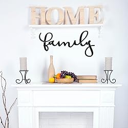 Hotop Metal Wall Decor Rustic Letter Signs Black Wall Art Hanging Word Cutout Decoration for Home (Family Style)