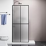Goodyo Glass Shower Door 34" x 72" Frosted Tempered Glass Panel Fixed Shower Screen for Walk-in Bathroom Matte Black Frame