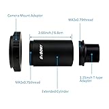 SVBONY Cell Phone Adapter Suitable mobile phone width is 55mm/2.16inch to 100mm/3.93inch SVBONY Cell Phone Adapter fits eyepiece diameter from 25 to 48mm and 1.25" telescope;not fit 2" eyepieces SVBONY universal cell phone adapter mount makes it easy to position a point and shoot for high magnification photography SVBONY T Adapter and T2 T Ring Adapter compatibles for Canon EOS and Rebel SLR and DSLR Cameras and Photography;Note:it doesn't fit for EOS-M models;connect camera to telescope for direct prime focus photography convenient and easily Connect the T-ring mount and T-Mount by M42 threads;extended cylinder length 68mm;fit many eyepiece;It can adjust eyepiece location;help you to get more sharp image