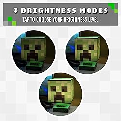 Blocky Bedside Creeper: No explosions and it won't be chasing anyone, this Minecraft Creeper Icon Lamp has ditched its more unsavory characteristics to become your bedside companion to protect against the dark For All Minecrafters: Designed with details that stay true to the famously pixelated video game, this Minecraft Creeper Icon Lamp stands 26.6cm (10.4 inches) tall and is powered by USB (cable not included) or 3x AA batteries (not included) What's in the Box? The base and shade of this light come complete with an LED bulb and has three different light settings and an auto shut-off function so you can both sleep peacefully through the night Great Practical Gift: This Creeper Icon Lamp makes a great present for any Minecraft fan or gamer aged 6 years and over and can be used in any room or taken with you wherever with the fully battery operated option Official Merchandise: A great lamp for any Minecraft fan, this Minecraft Creeper Icon Lamp is officially licensed and approved by Mojang AB to give you the confidence in your purchase that you need anytime