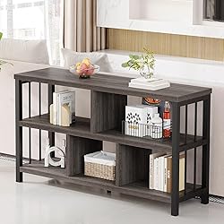 - Industrial and Rustic Style Appearance: Display books, curios, plants, family photos and other knick-knacks with this stylish and versatile Square 5 Cube Storage Organizer with Metal Base. It is constructed of sturdy MDF and metal and features five separate square openings. The metal base adds a modern touch of elegance. With it's textured modular design, this wood cube organizer can be used in almost any room in the home. It can be used alone or paired with the separately sold Collapsible Fabric Storage Cubes of choice for added versatility and visual appeal. Multiple Features for Your Daily Life: This living room storage furniture can not only be placed in the living room as a modern cube storage TV stand or a wood cube storage shelf, but also can be placed in the entrance as entry table, in addition to the study room as a industrial low bookshelf, various functions to meet all your daily needs! Perfect Storage and Display: Whether you're struggling to house your hardback collection, or just need to add a little organization to a room, a book shelf like this perfect for an understated style and handy storage. with 5 cube storage areas, this cubby shelf is perfect for keeping odds and ends corralled and at the ready. Display items of all sizes horizontally or vertically, from books to toys to decors and more. Powerful Support System: There are 2 legs below the cubbies storage shelves, which greatly increases its load-bearing ability, and can make more things. SPECIFICATION: - Color: Dark Gray Oak - Material: Cube Storage Organizer Wood (MDF) and Square Steel Tube - Product Size: 47.2”W x 13.4”D x 30.0”H Inch - Product Weight: 41.47 lbs Package Contents: - 1 x cube organizer shelf - 1 x Hardwares - 1 x Instructions
