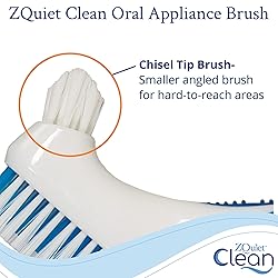 Quick And Efficient: The large brush head quickly scrubs the broad surfaces, while the precision chisel-tip brush ensures germs and bacteria don’t hide in those hard-to-reach areas. Easy To Control: The oversized ergonomic, non-slip grip increases comfort and control. Works On All Oral Appliances: This versatile brush can be used on all types of dental devices including, snoring mouthguards, bite guards, sport mouthguards, retainers, aligner trays, dentures, partials, and more! Oversized multi-tufted brush PERFECT PAIR: Combine with minty fresh ZQuiet Clean cleaning solution for a more thorough cleaning with LESS TIME AND EFFORT