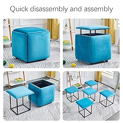 Maximum Load: The maximum static load weight is up to 331lbs (150kg). The cushion is filled with high-elastic sponge, can withstand multiple impacts, fits the hips and sits comfortably for a long time without getting tired, and adopts a stable and firm frame, which is strong, stable and not easy to deformly for a long time without fatigue, and adopts a stable and firm frame, which is strong, stable and not easy to deform Cube Design: The cube ottoman, 5 to 1 ottoman, the unique design can make sure you have enough seating for your party (Small Size: About 13.8x13.8x14inch/35*35*36cm, Large Size: About 17.7x17.7x18inch/45*45*46cm) Internal Storage: 4 benches can be combined into a storage square stool, which can quickly store items and save space, it's ideal for keeping your home clean and tidy Multifuctional: When it assemble, it's a flexible seating, when it apart, it can be a dining chairs, it also can be a chairs for makeup, a shoes change stool, night table, end of bench. Can be used in multiple room settings, such as office, kitchen, kid's room, dining room, condos, small spaces, and serve multiple roles to suit your particular needs Easy To Move: The Folding storage ottoman is equipped with 4 universal caster wheels, it can be easily move in the room, reducing our burden