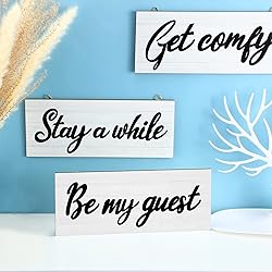 What you get: you will receive 3 pieces of rustic wood word wall signs, which are printed with different characters, you can choose to match your own preferences to decorate your home and make it look more delicate Reliable ad durable material: the get comfy wall sign is made of wood, which is sturdy and durable, can be applied for along time, printed with the color of black letters, not easy to fade; Its surface is comfortable to touch, so you don't have to worry about scratching your hands One size for most places: the be my guest wall hanging sign is 9.8 x 3.5 inch in size, which are in the moderate size, suitable for hanging in most places, will not take up a lot of space, so that these places are no longer monotonous Vintage and chic design: the overall of get comfy wall sign looks very retro, the use of English letters makes the overall look very simple and generous, is a good accessory to decorate your room, you can hang it according to your preferences where you want to hang A good gift choice: the be my guest stay a while wall art is suitable for your friends, colleagues, parents as a gift on anniversary, Valentine's Day, birthday and so on, they will happy and feel cared for, helping to bring you closer to each other