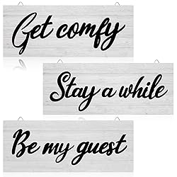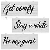 Maitys 3 Pcs Guest Room Decor, Get Comfy Wall Sign Stay a While Bedroom Wall Sign Rustic Wood Word Guestroom Art Decor for Home, Living Room