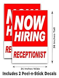 Now Hiring Receptionist (24" X 36") Vinyl Decal Only (Pack of 2)