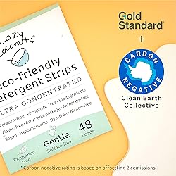 FREE AND CLEAR - Gentle for sensitive skin, our sulfate & fragrance free formulation is perfect for machine or hand wash CARBON NEGATIVE, EARTH AND ANIMAL FRIENDLY - We offset double the emissions generated per pack. Our strips are cruelty-free, vegan, biodegradable and just all around nice. Each pack is 20 times lighter than comparable liquid detergents, further helping to reduce transportation fuel and our overall carbon footprint with each load. PLANT POWERED - Our strips are 100% made from plants, plastic-free packaged in recyclable cardboard. TRAVEL - Ultra concentrated sheets that fit anywhere, the perfect travel laundry detergent. GET LAZY - Super convenient to throw in with your next load. Whether trekking to the laundromat, living in a dorm, traveling, or at home, just throw a strip into your laundry and forget about it. No more heavy detergent to travel with, no more sticky liquid to pour out, it's time to get lazy!