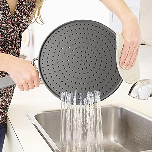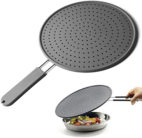 - Silicone Splash Screen: Splatter screen for frying pan shield is a multitools, use as drain board when washing vegetables, cooling mat, astrainer universal pan cover. When freshly baked food cannot be moved, use it as a heat mat and cooling plate. This round cover can be used in a variety of conventional frying pans and boiling pans, which can prevent you from getting burned by boiling oil or liquid during cooking.