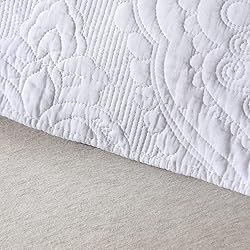 WINLIFE American Style Quilted Embroidered Solid Color Pillow Cases King Size 100% Cotton Boho Chic Printed Pillow Shams Set of 2 (20''x 36'', Damask, White)