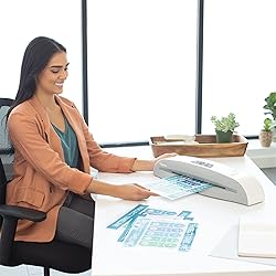 Preserve important letters, documents and photos with the Fellowes Rhea Laminator With Pouch Starter Kit. Decide whether hot or cold lamination best suits your needs, and quickly laminate up to 19" per minute with this machine. Hot lamination is offered for 3- and 5-mil pouches. Hot or cold lamination offers a durable seal. InstaHeat technology allows a rapid 1-minute warm-up. Laminates at speeds of up to 19" per minute.