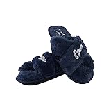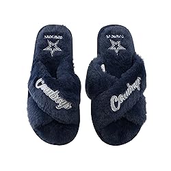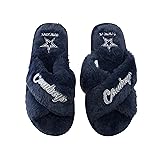 FOCO Womens NFL Team Script Wordmark Fuzzy Cross Slide Slippers