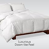 100% Cotton LUXURIOUS & LOFTY DREAM-LOFT - Down alternative fiberfill mimics the comfort and breathable warmth that down provides EXPERTLY CRAFTED - Sewn-through box construction maximizes fluffiness and keeps the fill evenly distributed ULTRA LUXURIOUS - Soft, 100% cotton cover will not retain heat or sleep hot EASY CARE DUVET LOOPS - Corner tab ties have been added for convenience alongside a tailored and elegant cording that lends a stylish finish to this all-season warmth comforter US SMART - Filled and finished in the USA