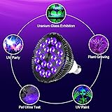 [High Brightness LED Black light Bulb] This black light bulb is assembled with 18*2 super bright LED lamp beads, and the brightness of the lamp is strong. 120-degree Optical Lens, higher Lumen output per watt than other blacklight bulbs, super bright [Advanced Spectrum] The wavelength of the black light lamp is 395-400nm, which can make the fluorescent material brighter in the dark, which is perfect for glow parties, Halloween decorations, blacklight poster displays, Acrylic Pouring Light, DJ Dance Parties. Ultraviolet light is meaningless for displaying your work, brighter light will bring a better display effect [Better Heat Dissipation] This black light build with new upgraded PAR38 aluminum cooling heat body, keep the good temperature even after 24 hours of continuous use, This makes the life of the light up to 50,000H+ and more energy less heat [Easy to Use] Designed to fit standard E26 E27 socket, It can be used when installed on E26 E27 lamp holder. 100-240V AC, large cover area, easy to set up and use [Safety & Professional Service]:Founded in 2003, KINGBO has been in business for 10 years and is committed to improving the quality of people's lives by providing reliable and innovative products to our customers. We offer 12 months of support and 30 days return. If you have any questions, please feel free to send us a message