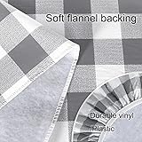 Fitable Checkered Picnic Table Cover Waterproof Outdoor Table Cover with Bench Covers 3pcs, Vinyl Fitted Flannel Backing Tablecloth 30"x72" for Picnics, Party, Folding Table, Silver Grey