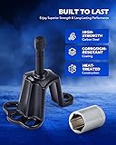 PULL FRONT WHEEL HUBS: This wheel hub puller set by Orion Motor Tech includes a universal 3-3/4'' to 4-1/2'' hub puller, a 5/8 inch x 18 forcing bolt, a fasten lug nut, and a helpful socket to quickly and easily loosen and remove your front wheel hubs UNIVERSAL COMPATIBILITY: The front hub puller, compatible with most vehicles with independent front wheel suspension, firmly locks onto your axle assembly, making removal of stuck front hubs a cinch QUICK & EASY OPERATION: These automotive tools work together to provide straight and even force so your front hub pops out smoothly, leaving the wheel bearing inside the joint and the rest of your vehicle untouched BUILT TO LAST: Made of premium AISI 1045 medium carbon steel, our wheel hub removal set provides strong and dependable service for the long haul; heat treated and blackened or chrome plated, each part offers superior durability and corrosion resistance for long-term use MULTI-FUNCTION: The threading of our forcing bolt works with other 5/8 inch x 18 adapters to deal with various car models or to handle other work around your engine