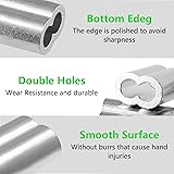 PHITUODA 100pcs 1/8 Inch Aluminum Crimping Loop Sleeve for Wire Rope and Cable, Double Hole Type