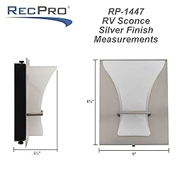 - This RV LED wall sconce interior light is a wall mounted model. It measures 5" wide by 6 1/4" high by 3" deep and has a silver backing with an opaque white sconce. This minimal yet sleek design gives you a terrific light while adding flair and style to your RV interior. The compact size means you can place it close to the ceiling without causing problems with space. At the bottom of the unit, there is a push-button to turn the unit on or off. This unit is easy to install as well, with a simple 2-wire installation that doesn’t need a recessed area to place it in. Rather, it mounts on the wall utilizing the back metal plate to keep everything in place. This model uses 12V power and draws about 2 watts of power.