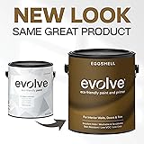PAINT + PRIMER IN ONE: Evolve’s paint-and-primer formula helps you get great coverage from the start, sealing your surface and reducing the extra work of multiple coats. Superior Protection: All of our specialty finishes let you brush smoothly & evenly while delivering maximum coverage. Improved sealing technology allows for easy cleaning and protection from common water issues EGGSHELL SHEEN – Soft, Velvety Glow: Offers a gentle sheen that balances elegance with durability. Ideal for moderate-traffic areas like dining rooms, hallways, and family rooms. Easy to clean without compromising the finish. STAIN & SCRUB RESISTANT: Built to last in real spaces, Evolve helps resist marks, scuffs, and water spotting, so your home continues to look polished and well-maintained. DESIGNED FOR MOISTURE-PRONE AREAS: Formulated to perform well in bathrooms, kitchens, entryways, laundry rooms, and other high-humidity spaces. LOW ODOR & LOW VOC: A safer painting experience for you and your family. Minimal fumes mean you can enjoy your space sooner without the strong paint smell. USA MADE, ECO-FRIENDLY PAINT: Made with sustainable materials and low- waste processes for beautiful, long lasting color. Crafted in the USA for consistent quality you can trust.