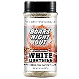 - Set of three (3) Boar's Night Out Spicy White Lightning is the new spicy version of the must-have, all purpose flavor enhancer for smoking and grilling. Boar's Night Out Spicy White Lightning blend is the perfect balance of herbs and spices with a touch of sweet sugar. The mix of the sugar, garlic and now spice truly brings out all of the flavor in pork, beef, chicken, fish, and all of your veggies. Boar's Night Out White Lightning Grill Seasoning is used by the Boars Night Out competitive grilling team and most recently was used to win the World Championship Steak Competition. Made in USA.