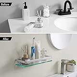 Upgraded Brackets - More Stable: Upgraded brackets have greater stability to fit the shelf snugly against the wall, even when holding heavy items. Max. load: 5kg/11lbs. Also, the all-metal frame crafted without any plastic ensures maximum sturdiness. Prevent Rust: Made of aluminum frame and 304 stainless steel screws, our glass shelf is rust-resistance and ideal for humid environments like kitchens and bathrooms. Fits flat and smooth wall surfaces. Max. Load 5 kg/11 lbs, NON-plastics, metal frame, solid construction, sturdy design. Screws are made from SUS 304 stainless steel and won't rust. It can be screw mounted to flat and smooth wall surfaces, like tiles, marble stone, metal, glass, etc. (Note: Non-solid walls are not suitable for it.) Space Saving: Shelf depth 4.72-inch, compact size, and huge storage space. Widely used in the kitchen, lavatory, living room, balcony, etc. You can find a precise dimension from product pictures. Overall dimensions: 13.78 x 4.72 x 1.65 inches (LxWxH). All Hardware And Instructions Included: 1 x Glass Bathroom Shelf, 1 x Hardware Pack, Installation Instructions. Set screws (for glass shelf), wall-mount screws and instructions are all included, no need to purchase extra hardware.
