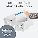 Snap-N-Store Blu Ray and Video Game Storage Box - 2 Pack Durable, 11.7 x 6.7 x 5.6 Blue Ray Organizer Box Set w/Lids for Media Storage - Holds up to 20 Disc Boxes - White
