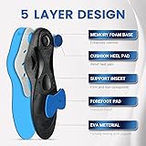 FOOT PAIN RELIEF: PCSsole orthotic inserts for women/men offers a superb level of 3.5cm high arch supports. Deep heel cup can align your body in the middle place. They can relieve foot pain caused by long time standing, flat feet, heel spur, foot valgus, over pronation, plantar fasciitis, fallen arch, bunions, arthritis, achilles tendonitis and also ball of Foot pain. COMFORT ARTCH SUPPORT: Upgraded Semi-rigid high arch support insoles Provides moderate control and support in walking and standing, comfort and cushioning for everyday use. Deep U shape heel cup keeps foot bone vertical and balance to provide stability. MAXIMUM CUSHIONING:Dual layer PORON foam and PU material is excellent for shock absorption and pain relief. Gel cushion under the heel and the metatarsal gel pads are also very helpful and durable to relive heel pain and foot fatigue. Anti-slip fabric reduces odor and keeps the feet fresh. DESIGN FOR DAILY USE:The orthotics provides moderate control and support in walking or sports shoes, work shoes and boots, high volume dress shoes, hiking shoes. Comfort and cushioning for all types of leisure or everyday footwear. TRIM TO FIT YOUR SHOES: You can cut according to the original insole, the insoles are easier to put on and take off. Always contact us if any quality issues. You just feel relief once on your foot with this comfort orthotic insoles in your shoes.