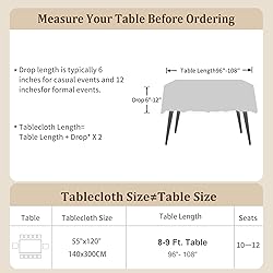 - About Laolitou TablclothWaterproof tablecloths are cotton and linen fabrics, washable and reusable, elegant, anti-fading and Wrinkle Free Oil Stain Resistant, Heavy Duty Fabric will protect your coffee table, dining table, folding table, sideboards and desks from scratches and stains.In addition, our tablecloths are also suitable for party birthday, picnic, camping, Kitchen Dining Patio, Party, Holiday, Christmas, BuffetNote: The picture may not reflect the actual color as different monitor display and light effectProduct sizes that measured by hand lead to the difference between about 1-2 Inch due to everyone’s measurement technique.How to chose the right-size tablecloth?1.Tablecloth size ≠ table size,Leave enough length to drop. 8''-14'' dropping for each side is recommended.2. Tablecloth size 55x55" fit for Table size 31x31"-39x39". Tablecloth size 55x70" fit for Table size 31x46"-39x54". Tablecloth size 55x86" fit for Table size 31x78"-39x70". Tablecloth size 55x102" fit for Table size 31x78"-39x86". Tablecloth size 55x120" fit for Table size 31x96"-39x104".EASY CARE:Wipes clean with a damp cloth (recommended).Do not bleach and iron.