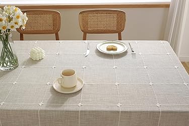 Material and function: Laolitou tablecloth has an additional waterproof coating, which is splash-proof and should be wiped dry in time. This is not a tarpaulin, it is made of medium weight durable cotton linen that is machine washable and reusable Choose a tablecloth: Measure the size of the table, it is recommended to increase the table length by more than 20 inches (10 inches on one side) to get a better drop effect. For any size and quality issues, please feel free to contact us. We promise to help you solve your problem within 24 hours Tassel edge design: The linen tablecloth with delicate embroidery patterns and beautiful fringe tassel gives you a decent elegant feeling. Embroidered simple pattern, cute fringe tassel pom-poms edge More Occasions: As indoor table protector for dining room coffee table cover, kitchen table pads, as outdoor tablecloth for birthday party, wedding tablecloth, brunches, buffets, picnics, catering, restaurants, hotel, patio table and so on. Note: This is not a plastic tablecloth Easy to clean: Machine washable in cold water with a gentle detergent, using a dryer or hung it to dry, tightly sewed tassel fringe will hold well after washing