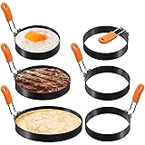- Features: Nice presents: These stainless steel cooking rings are suitable for sharing with your family members, friends, relatives, cousins, neighbors, colleagues and anyone you like, which can show your love and care, and they will like these practical tools. Easy to clean: The round egg cooker rings with orange silicone handles are easy to clean, and no maintenance required, the quality material makes them not easy to leave residue, which can save your time and effort. Specifications: Material: stainless steel Main colors: black, orange Size: 4 inches, 6 inches and 8 inches Package includes: 6 x Stainless steel egg rings Warm notes: Due to the differences in lighting and screen settings, the colors of the items may be slightly different from the picture. Due to different manual measurement methods, please allow slight size differences.