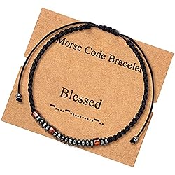 Inspirtion Bracelets: Morse code bracelets carry a message of support and encouragement,it use dots and lines to experss the words,which was first used in telegrams and maritime communications.Our morse code bracelet express message between friends lovers families coworkers. Material:The bracelet is made of waxed nylon cord,obsidian beads,hematite beads,will not do harm to your skin. Adjustable Size:The length of the bracelets are adjustable,the length can be adjusted from 5.91inch to 10.2inch,one size fits most. Unique Gifts:Morse code bracelet comes with a international morse code card,it is a great gift to friends,families,lover,teachers on birthday,graduation,Christmas,Mother's day,Valentine's Day,Thanksgiving Day. Service:If you have any questions or not completely satisfied with your purchanse,please let us know,we will reply you in 24hours.