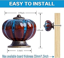 🎃KNOBS PERFECT SIZE:Diameter 1.57inches (40mm),Height 1.5inch (38mm)-SCREW SIZE: 1.4inch,1.73inch.. 🎃EASY TO INSTALL: Find the position where you want to install on the board and drill a hole, then pass through the screw from the back of board and thread tight to the knob. It comes with 3 different length sizes screw to meet different needs.So you don’t worry about the screw not fits. 🎃KNOBS APPLICATION:These knobs are a great way to transform any room, Ideal for home, kitchen, office & bathroom.Suitable for drawer,wardrobe, dresser, kitchen cabinets, cupboard, bin, bookcase, doors, dressers, drawers, gem, closet and More. 🎃STYLE UP YOUR SPACE:Update your Home Décor by adding decorative hardware to your cabinets and drawers. The simple addition of knobs and pulls can revitalize the look and feel of an entire room. 🎃If there are any problems with these ceramic knobs, such as missing products or accessories, please contact us at once, we can refund you or resend you a new set of pumpkin knobs.