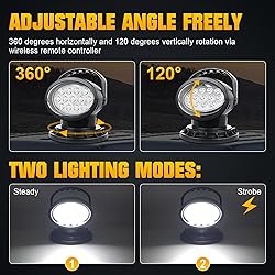 High Brightness: Made of 10*5W high intensity LEDs, 5000 Lumen brightness. Operating Voltage: 9-30V DC. With an illumination distance of up to 150 meters, Our remote control spotlight can clearly illuminate the search target and help you get the job done safely and efficiently. Remote Control: A rotatable wireless remote-controlled LED search light possess 110 degree vertical rotation range and 360 degree horizontal rotation range to achieve wider illumination range ( Up and down 110°rotation, left and right 360°rotation). Easy to Use: With a magnetic base, you can stabilize the led remote Spot lamp on your vehicle without mounting brackets; IP67 sealing, rubber gasket and silica gel gasket maintain sealing performance, and die-cast aluminum alloy shell protection gives excellent anti-shock and dustproof performance. Wide Application: Fit for Automotive 4x4 interior, exterior lighting, Boat cabin lighting, Caravan lighting, Truck & trailer lighting, Hunting, camping & outdoor lighting, Off-road driving, Construction lighting, Mining lighting, Garden & exterior lighting. Available for home security, farm, field protection, emergency lighting, garden, etc. (Suit for :hunting, searching, fishing, hiking, camping, emergency lighting etc. Package Included: 1x Wireless Remote LED Search light; 1x Wireless Remote Control; 1x Manual