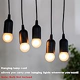E26/E27 Lamp Socket: 9.8FT length hanging pendant light cord with E26/E27 socket, insulation flame retardant heat resistant, corrosion resistant, durable, CE certification CE Certification ON/OFF Switch: Safety rated. Work for LED bulb: 4W-6W, Energy-saving bulb: 8W-11W ,Incandescent bulb: 15W-25W. On/Off switch and AC Power Plug, Working voltage: 110V-130V. Note: Bulb NOT INCLUDED Applicable Scene: Perfect for DIY Projects. Plug-in pendant hanging light cord featuring an industrial style light fixture is perfect for a family room or modern and industrial decoration Easy to Install: Each pendant lighting plug in has ceiling hooks and cord hooks for hanging. Just need to hanging it and add your light bulb. Make the perfect decoration in any part of your home without having to worry about drilling holes in the ceiling