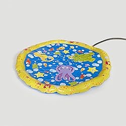 42 in diameter water-sprinkling play mat Fun-to-touch squishy water-filled sprinkling rim Introduces little ones to backyard water play Easily attaches to any garden hose Recommended for ages 18 months +