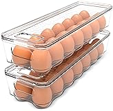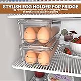 Utopia Home Egg Container With Lid and Handle for Refrigerator Organization- Pack of 2 - Clear Stackable Egg Holder for Kitchen or Pantry Organizers and Storage
