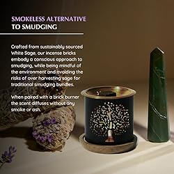 White Sage & Lavender Incense bricks (2 x 9 Bricks each) are a beautiful combination of natural sage extracts and Therapeutic Grade Lavender essential oil to deepen relaxation, cleanse and resonate positive energy. This is an impactful combination that provides purification along with a calming effect that soothes the senses. This set comes with our custom Exotic Incense Brick Burner Useful to debunk negative energies from spaces outside and within, White Sage & Lavender Incense bricks will relax your mind as well as purify the home. When burned, it diffuses a deep, earthy, sweet and inspiring scent that is perfect for relaxation, grounding & protection HOW TO USE: Place this low-smoke, non-toxic brick on the copper plate of our custom exotic burner and lighting a tea light candle below it. There is a clean fragrance released as the incense does not burn, but is operated by heating and emits a very rich and deep aroma which can scent a room upto 400 square foot in size! Each incense brick has a burn time of 3.5 hours SUSTAINABILITY: We strive to deliver an experience that’s positive in every way. All of our ingredients are ethically sourced and our products are 100% vegan and cruelty free. We support sustainable agricultural and manufacturing practices, invest in recyclable packaging, and are consciously mindful of our actions. As a values-driven business, we’re committed to building an eco-conscious future for perfumery, and set an example, that will inspire brands to embrace sustainable practices HERITAGE: We’ve been working on the art of blending natural materials since 1907, and have travelled the world in search of effective aromatics to use in our blends. This history, coupled with a desire to introduce innovative ways to consume fragrances has over the last century led to the creation of fantastic recipes, which translate memories and emotions into experiences. We take care in crafting exceptional products, manufactured in small batches, that are compellingly precious yet personal