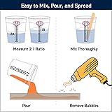Deep Pour Epoxy Resin Kits designed for larger woodworking and artistic projects. Create 2 - 3 inch pours with deep pour resin, letting you craft river tables, preserve flowers, and cast large molds in a single layer for long-lasting beauty. High-Gloss, Crystal Clear Epoxy: TotalBoat Fathom features brilliant clarity, self-leveling bubble release, and UV resistance to protect and enhance artwork and furniture. Resists heat, moisture scratches, stains, and yellowing. Low-Viscosity, Tintable Formula: Easy to mix and pour, this clear deep pour resin is perfect for creating stunning floral displays. Get creative with alcohol inks, pigments, or mica powder to create custom furniture, dioramas, and sculptures. Extended Work & Cure Times for Great Results: This deep-pour casting resin has a simple 2:1 mix ratio with an impressive 4-6 hour working time to embed objects and make adjustments. Slow cure rate prevents shrinkage and cracking for smooth surfaces. DIY Friendly Kits with Professional Results: For a consistent cure, maintain 65-80°F in your workspace. This deep pour epoxy is ready to demold in 48-72 hours. Allow for full cure (5-7 days) before turning or sanding.