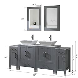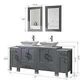 - Goodyo 72" Bathroom Vanity Cabinet Double Sink Solid Wood Marble Top w/Sink,Mirror, Faucet&Drain,Grey