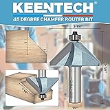 KEENTECH Router Bits, Carbide Tipped 45 Degree Chamfer Router Bit for Edge Forming, Industrial Grade Blue Cutting Tools for Woodworking (1/2 Inch Shank x 1-1/8 Inch Bevel x 1 Inch Depth, KT02031808)