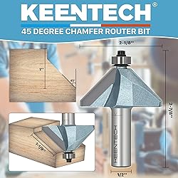 【1-1/8 Inch Bevel Length 45°Chamfer Bit】1/2 Inch Shank x 2-1/8 Inch Cutting Diameter x 1 Inch Cutting Depth x 2-7/8 Inch Overall Length 【Precise Chamfering】KEENTECH 46-degree Chamfer Router Bits are designed to create precise and clean chamfered edges on a variety of materials. 【Reliable Performance】 Composed of high-strength steel and tungsten carbide blade. KEENTECH Router Bits are built to withstand demanding tasks and offer long-lasting performance. 【Versatility】 Suitable for a wide range of materials such as wood, plastic, and soft metals, making them a versatile choice for various applications. 【Compatibility】 Designed to fit most standard routers, these bits are easy to install and compatible with a variety of router models.