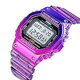 【Cool Colorful Watch for Students】: Contrast color, fashionable transparent matte strap, this watch can greatly show your personality and energy, Is the perfect way to amp up your street style. Perfect for unleashing your vitality and youth. Suitable for the students who like digital dual time watch. 【Multi function Watch】:The LED digital watch has multi-function: Dual time, chronograph, countdown, date, week, alarm, luminous, 12 / 24-hour,1/100 second stopwatch, and LED backlight, easy to read the time at night. Suitable for those who like doing sports.Perfect for all kinds of sports and daily use. 【Watch Movement】:High-quality Japanese imported movement with digital display, provides precise timekeeping. Super powerful battery function, can stand by for a long time, prolong the service life of the watch. 【50M waterproof】:The women watch can meet your daily use waterproof. But we DO NOT recommend wearing it when bathing, swimming, diving, etc. (Please DO NOT PRESS the button underwater.) 【Perfect Gift】:The sports watch is casual, stylish, and totally reliable,suitable as the best choice for the one on Birthday, Graduation, Festival, Christmas, and New Year, etc..If you have any questions, please feel free to contact us.