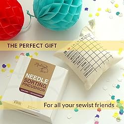 ORGANIZE SEWING NEEDLES for quick, easy retrieval with the Madam Sew Needle Sorting Pin Cushion. Our innovative needle holder sorts by size and type so you can complete your sewing projects faster. INNOVATIVE GRID sets ours apart from other pin cushions for sewing. It has spaces for 5 sizes and 7 types of needles including embroidery, serger, denim, stretch, ballpoint, microtext and universal. PROTECT AND PRESERVE sewing essentials with the Madam Sew Needle Cushion. Corralling your sewing needles in the sewing pin cushion reduces risk of loss and helps keep them sharp, straight and clean. CONVENIENT AND COMPACT in size, the Needle Sorting Pin Cushion fits into a drawer with other sewing accessories. If space for sewing supplies is limited, hang our pincushion by the looped Madam Sew tag. THE PERFECT GIFT for your crafty wife, mom or grandmother, the Madam Sew Needle Sorting Pin Cushion is a must-have addition to quilting supplies, embroidery accessories and other sewing products. Perfect for Gifting: The ideal sewing gift set for sewing lovers and quilters—this crafting gift set is a unique sewing gift and a true beginner sewing gift. A top choice for sewing gifts for women adults, sewing gifts quilters, and gifts for people who sew.