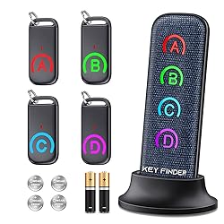 🎁【Slim & Unique Key Finder】NEW fabric material key finder locator with only 0.14 inch thick receiver. Unlike common plastic key finder, Our key tracker more versatile and can be easily attached with TV remote controllers, mobile phones, glasses box, wallets, pets, luggage and more. 🎁【Super-long Work Distance】EIRIX item tracker make noise with 131ft+ super-long work distance RF can easily penetrates though walls, cushions and doors to find the lost item. Just press the button and follow the loud "Beeps". 🎁【Humanized & Portable】EIRIX key finder locator has LED flashlight function, which can help you find items quickly even in the dark. The four small and thin receivers can be hung on the key or bag, or placed in the narrow space such as wallet. 🎁【Easy & Quickly to Locate】NO phone and APP needed, just install the batteries, press the related color-coded buttons and follow the sound easy track your lost item.(We have equipped you with the necessary batteries. WARNING: CHOKING HAZARD-Small parts not for children) 🎁【Save Time Smart Life】Key finder to help you solve annoying problems at work or in life, is a best product you never knew you needed. Great Christmas gift and birthday gift for familys and friends! If you have any questions in use, please feel free to contact us, we will reply to you within 24 hours and provide perfect solution. We provide 90-day warranty, please buy it with your confidence.