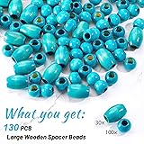 WILLBOND 130 Pieces Macrame Wooden Beads 10mm Hole Loose Beads with Hole for Macrame Making Kits Supplies Jewelry Bracelet Making Hair DIY Craft Handmade Decor(Peacock Blue, Classic)
