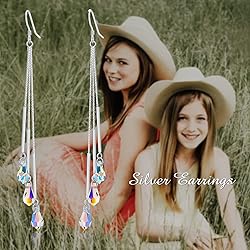 ♥♥ This long earrings featuring Color Change Aurora Borealis multiple teardrops & 5.3 carats crystals from Swarovski reveal brilliant shine and a meticulous cut。It displays incredible rainbow colors in different light, adds an elegant sparkle to any outfit! ♥Specification♥ Crystals Size: 0.29 inch * 0.59 inch. ♥925 Sterling Silver & Crystal ♥ Made with hypoallergenic 925 sterling silver and embellished with crystal from Austria. ♥Ideal Gift Ever♥ This earrings will be packed in an elegant and adorable gift box. A perfect gift for Girlfriend, Wife, Sister, Friends, Mother, Daughter and suitable for any occasions such as Birthday Gift, Wedding Anniversary Gift, Christmas Gift, New Year Gift, Valentine's Day Gift, Mother's Day Gift, etc. ♥Customer service♥ 100% Satisfaction and Money Back Guarantee. If you have problems with our products or service, please feel free to contact us. We are so glad to help you to resolve it.