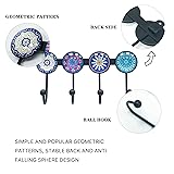 Banllis Coat Rack Wall Mounted with 4 Hooks, Round Blue Pattern Decorative Wall Hooks for Hanging Hat, Key, Towel, Purse, Bag and Robe, for Entryway Bathroom Organizer Hanger