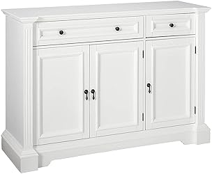 - KB Designs - Buffet Server Sideboard Breakfront Storage Cabinet, White Finish Wood Product Description The Wood Sideboard Breakfront Table is finished in a crisp shade of white to add value to your space. On top, one large drawer and one small drawer allow storage for living area essentials, while beneath, two spacious cabinets offer room for stashing blankets, throw pillows, and more, making it a practical addition to your home. Features Finish: White Material: Wood Handles: Black Number of Drawers: 2 Number of Cabinets: 2 Doors: 3 Number of Interior Shelves: 1 in Each Cabinet Assembly: Required Dimensions Item Size: 46" W x 15. 75" D x 32. 25" H Size of Left Drawer: 24. 375" W x 11. 5" D x 3" H Size of Right Drawer: 11. 25" W x 11. 5" D x 3" H Size of Left Cabinet Double Doors: 27. 75" W x 12. 75" D x 20. 25" H Size of Right Cabinet: 14. 5" W x 12. 75" D x 20. 25" H