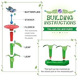 Christmas Gift for Kids: Building your own garden kit is an ideal gift for girls aged 3 and up. The parts are all interchangeable, allowing for endless combinations and designs. The countless possibilities make it a great birthday gift and Christmas gift for kids aged 3, 4, 5, and 6. Safe for Toddlers: This flower garden building kit for kids is made of upgraded non-toxic and durable ABS plastic. It has an eco-friendly design and a smooth surface that is safe for little hands. The gardening toy set can be washed with water, making it perfect for both indoor and outdoor play. It also comes with a convenient storage case. Educational STEM Toy for Kids aged 3 and up: This build-a-bouquet craft kit allows kids to build, match, sort, and mix pieces to create different flowers at will, fostering a deeper understanding of plants. It greatly helps develop their imagination, creativity, and concentration, while also improving hand-eye coordination and fine motor skills. Hours of Fun: The assortment of vibrant and colorful flower toys provides hours of fun. Kids will enjoy building their own garden, creating DIY flower pots, watering the flowers, and even decorating their own room with the finished flowers. It is suitable for school classrooms, family parties, beach games, and more. It makes a great gift for birthdays, Thanksgiving Day, and Christmas. It can also be used as Easter basket stuffers/fillers/toys/gifts for kids. Premium Quality and Aftersale Service: Our toy set is made with durable and safe ABS plastic. If you encounter any quality issues, please return it within 180 days for a refund or replacement. If you have any questions, please feel free to contact us. We will reply to you within 24 hours.
