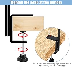 - Gtongoko Double Deck Hook, 35IN Vertical Clamp, Hanging kit with Two Branches, Multiple Pole for Hanging Bird Feeders, Lanterns, Wind Chimes, Flower and Plant Baskets,2 Pack Design and Quality: ● Our deck hook is made of high quality non hollow heavy material and are rust proof. ● Our deck hook has non slip adjustable clamp that can accommodate 2 inch, and is suitable for different thickness of splints and railings. ● The two branch with beautiful string lights or more other things are very decorative and ornamental. ● The installation does not need any tools, just tighten the knob by hand. Decorate your outdoor space: ● You can watch the birds flying in the yard and listen to the melodious birdsong by hanging bird feeders on the deck hook. ● Hang the lamps on the deck hook to make the night scene of your yard more beautiful. ● Hanging flower baskets on the deck hook will make you closer to nature and decorate your yard to make it full of vitality. Specifications: Material: Steel Color: Black Size: 35inch Package includes: 2 x Double Deck Hook
